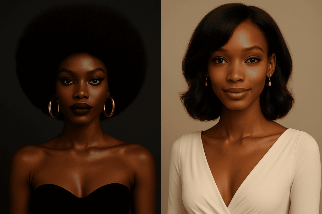 - Crée une silhouette puissante → la chevelure volumineuse encadre le visage et l’ancre visuellement, transformant la finesse en élégance affirmée.