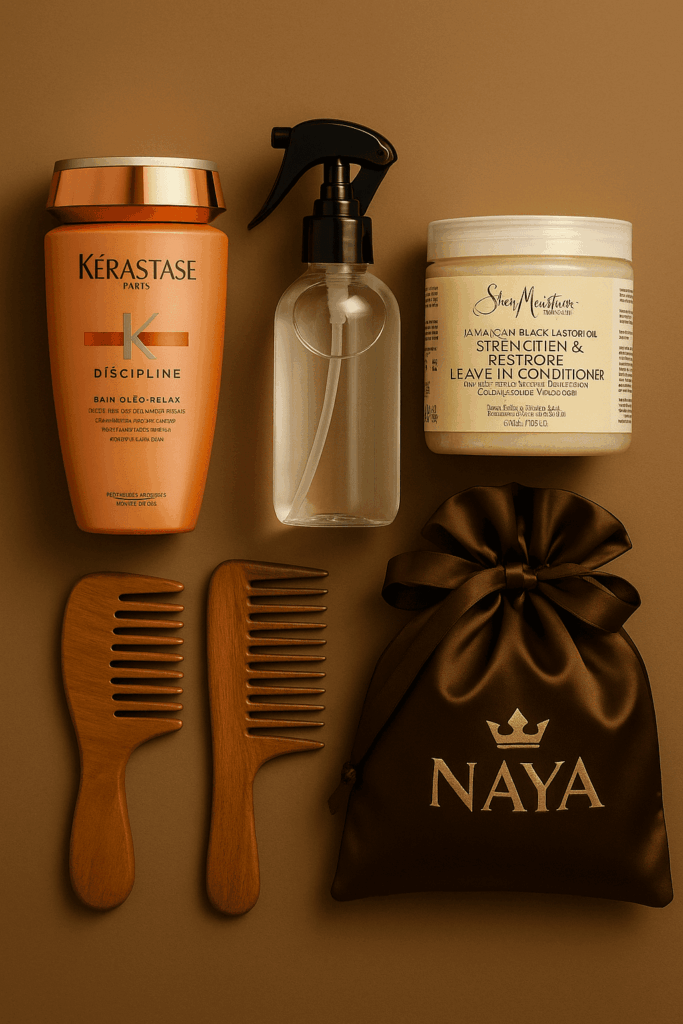 • Lavage : toutes les 6–8 utilisations, avec un shampooing hydratant sans sulfate (SheaMoisture, Kérastase Curl Manifesto).