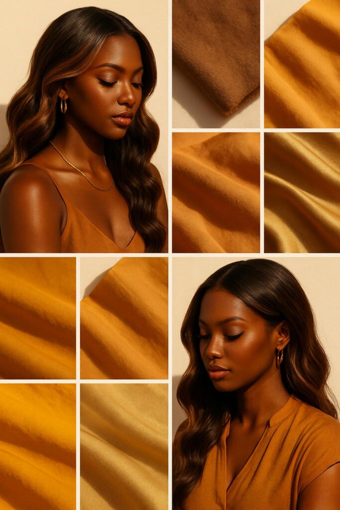 caramel chaud, brun doré, cuivre doux, bronze clair, sable miel, ocre feutré.