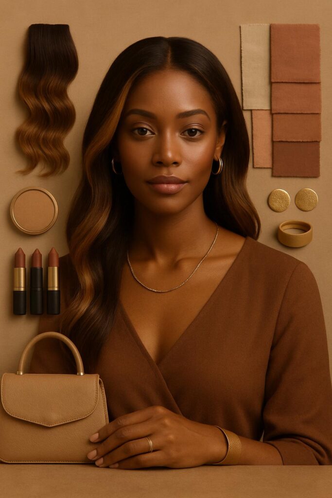 Une peau brun clair ambrée (#6B4E3D), où le moka s’allège sans se perdre, où la chaleur s’éveille sans brûler.