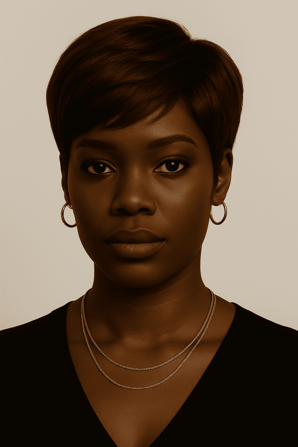Affirmée Acajou Sublime™ – Pixie Sculpté 6″ en cheveux naturels indiens. Reflets cuivrés chauds, coupe précise et éclat velouté sur peaux dorées et neutres. Affine les visages ronds et cœur.