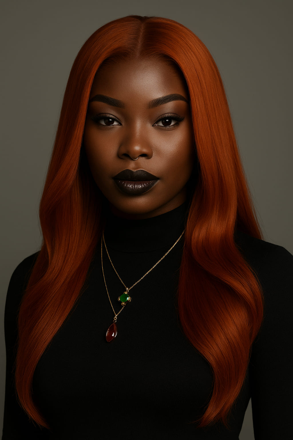 Trop de perruques longues saturent le visage ou éteignent la peau noire sous des reflets artificiels. Intemporelle™ a été pensée pour sublimer les sous-tons chauds profonds sans brillance excessive : une teinte Cuivrée Élégante qui capture la lumière sans l’écraser.