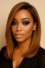 Aime-Toi N°73 – Moka Caramel Sculpté™ (#FS1B/30) – Lob lisse structuré, 14″, sans colle – Cheveux Naturels Indiens – Raie latérale douce, Baby hairs fins et naturels