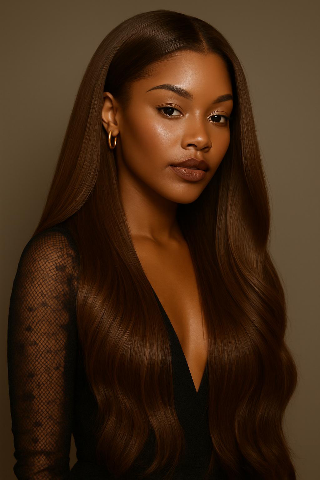 Idéale aussi au printemps, en été, qu’en automne et en hiver, Aime-toi N°48 est une Perruque longue Brun Moyen Élégant™ – 24″. Coupe fluide, naturelle et raffinée pour toutes les carnations. Longueur 24″ (soit ≈ 60 cm), cheveu indien premium.