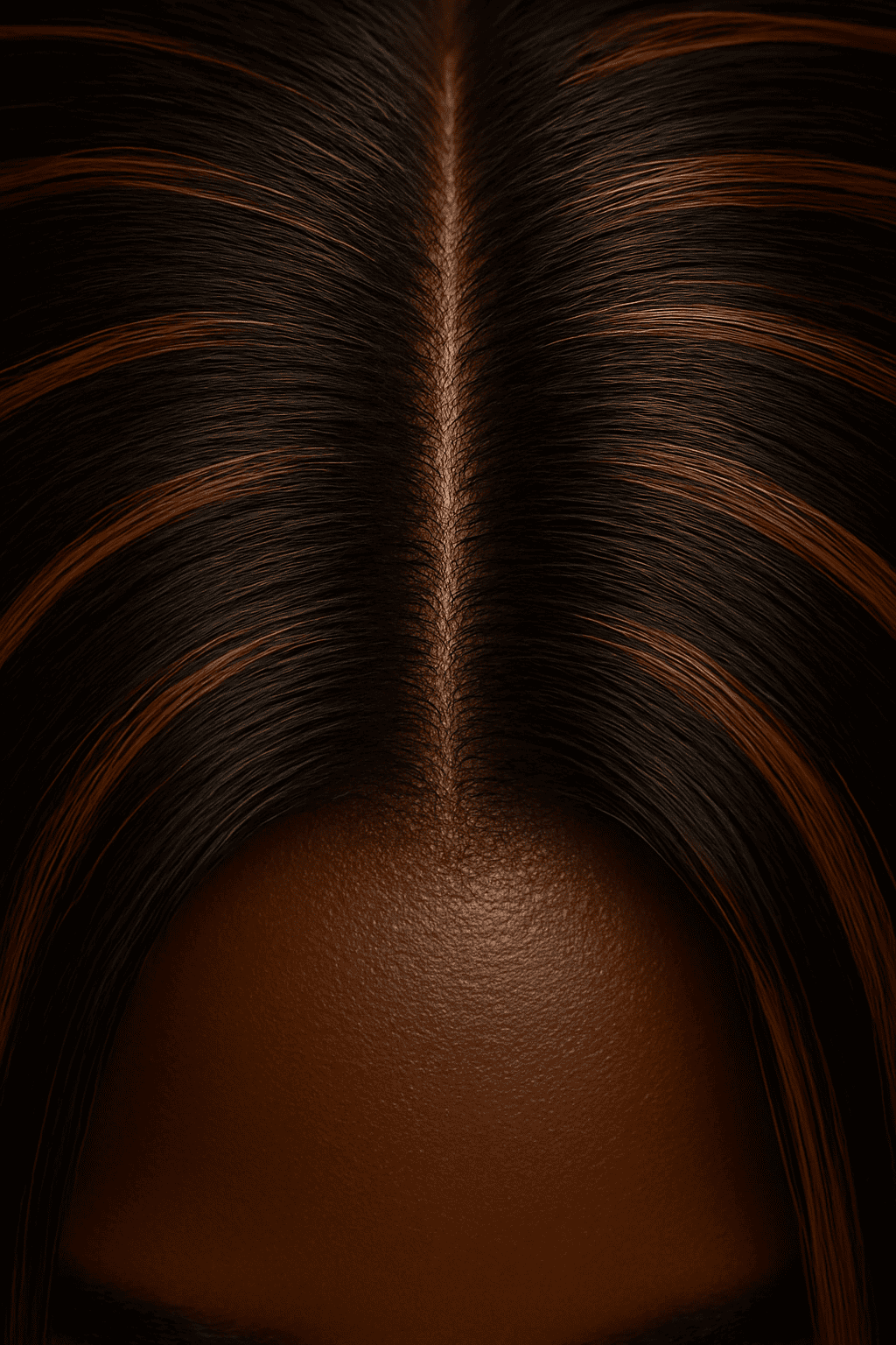Aime-Toi N°74 – Ébène Cuivré Élégant™ (#1B/30) – Long droit premium, 22″, sans colle – Cheveux Naturels Indiens – Raie centrale nette, Baby hairs fins au centre