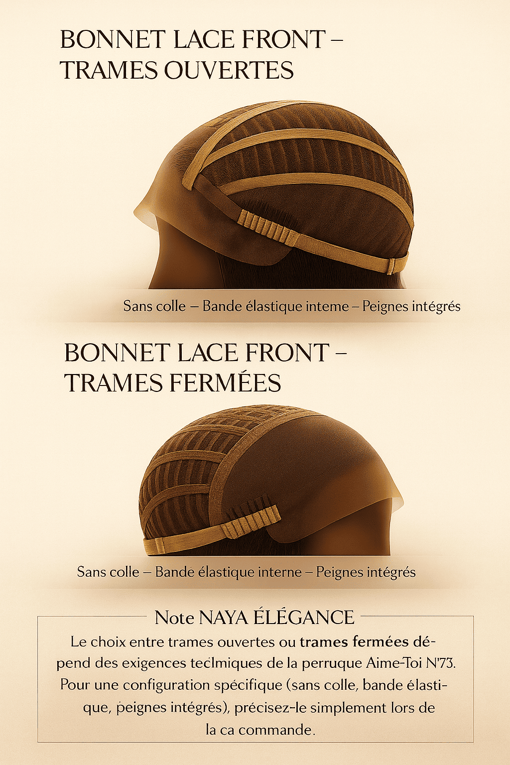 Chez NAYA ÉLÉGANCE, chaque perruque est exclusivement réalisée en cheveux indiens premium, rigoureusement sélectionnés pour leur douceur naturelle, leur souplesse élégante et leur brillance satinée. Contrairement aux cheveux brésiliens ou péruviens — souvent plus épais ou rigides —, le cheveu indien offre un équilibre parfait entre fluidité, légèreté et finesse, garantissant un tombé naturel, un coiffage facile et une tenue impeccable dans le temps. C’est le choix de l’excellence pour sublimer toutes les carnations et toutes les formes de visage.