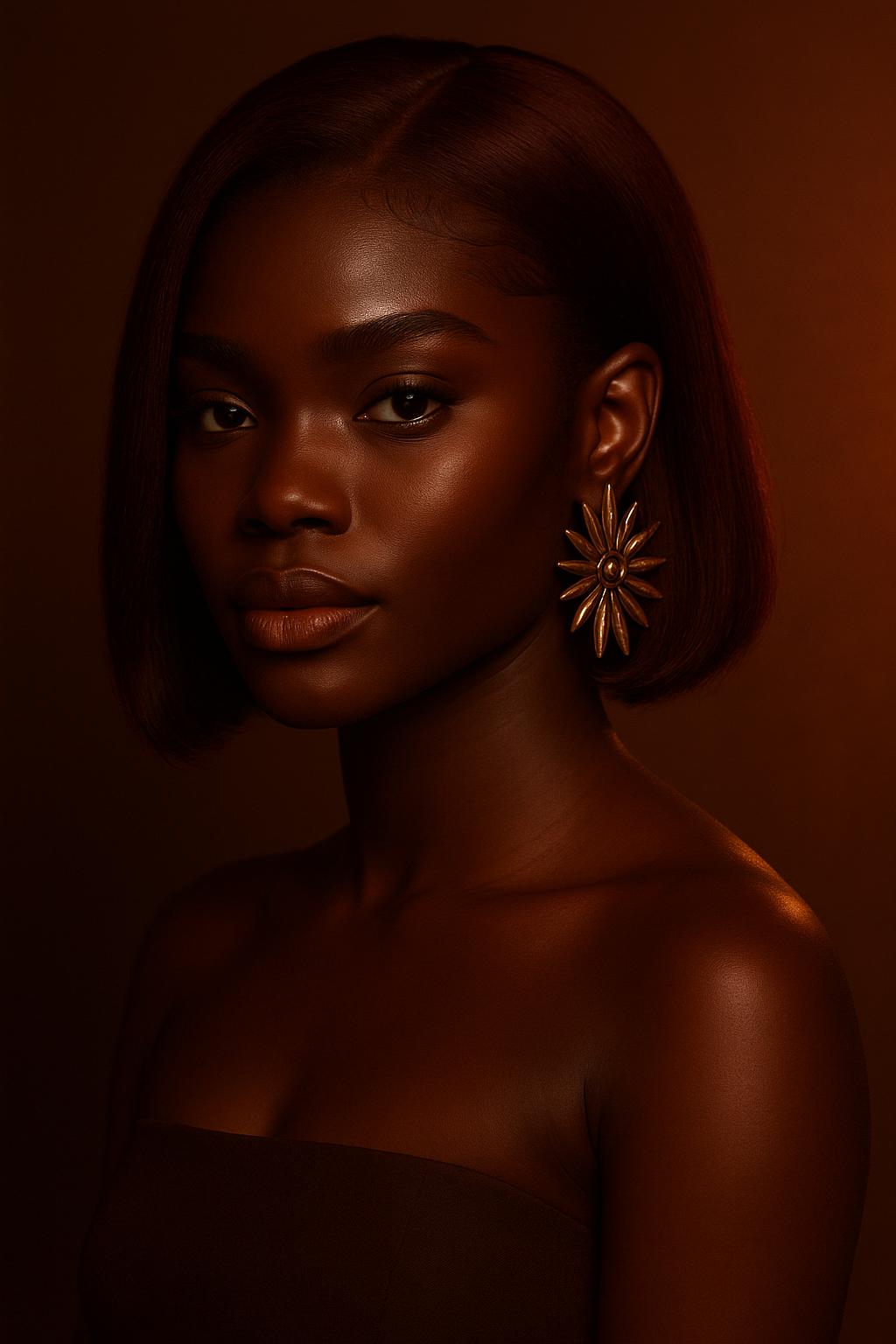 Diamant Boucles à mi-longueur, formes arrondies ou fleurs en bronze doux Studs trop petits ou géométriques Adoucit les pommettes et renforce la douceur du regard
